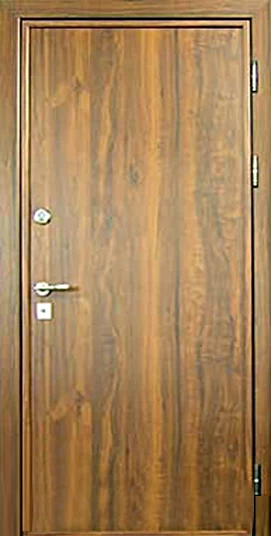 Ламинат - это доска из ДВП толщиной 4-5 мм с четырехслойным покрытием. Визуально он не отличается от натуральной древесины. Рисунок ламинированной доски может быть гладким и имитировать древесный спил или рельефным, имитирующим структуру дерева. Разнообразная цветовая гамма этого материала позволяет изготовить дверь, которая будет отлично смотреться в интерьере как квартиры, так и офиса.