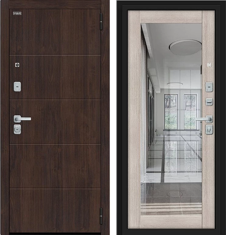 Надежная входная Дверь Браво Флэт/BChrome Almon/Cappuccino Melinga премиум класса по цене 42 603 руб. Большая толщина стали защитит от проникновения в ваш дом, квартиру или коттедж. Используется очень качественная фурнитура: замки, цилиндры, ручки, защелки. Покрытие и отделка двери изготовлено под внимательным контролем производителя. Дверь имеет долгий срок службы и гарантию.