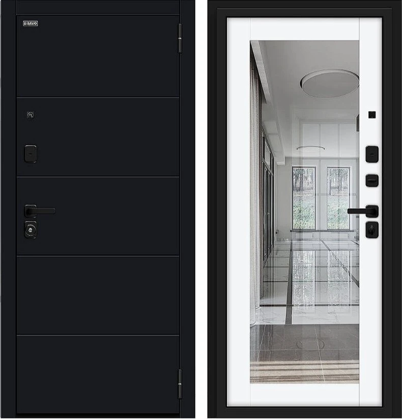 Надежная входная Дверь Браво Флэт/SBlack Black Shell/White Silk премиум класса по цене 42 933 руб. Большая толщина стали защитит от проникновения в ваш дом, квартиру или коттедж. Используется очень качественная фурнитура: замки, цилиндры, ручки, защелки. Покрытие и отделка двери изготовлено под внимательным контролем производителя. Дверь имеет долгий срок службы и гарантию.