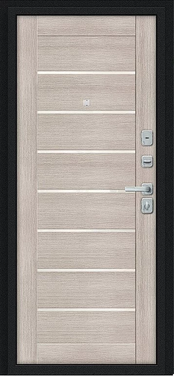 Надежная входная Дверь Браво Техно/BChrome Букле черное/Cappuccino Melinga премиум класса по цене 34 903 руб. Большая толщина стали защитит от проникновения в ваш дом, квартиру или коттедж. Используется очень качественная фурнитура: замки, цилиндры, ручки, защелки. Покрытие и отделка двери изготовлено под внимательным контролем производителя. Дверь имеет долгий срок службы и гарантию.