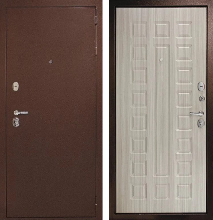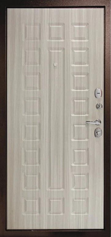 Надежная входная Дверь Рубикон 1 Медь Сандал белый премиум класса по цене 34 353 руб. Большая толщина стали защитит от проникновения в ваш дом, квартиру или коттедж. Используется очень качественная фурнитура: замки, цилиндры, ручки, защелки. Покрытие и отделка двери изготовлено под внимательным контролем производителя. Дверь имеет долгий срок службы и гарантию.